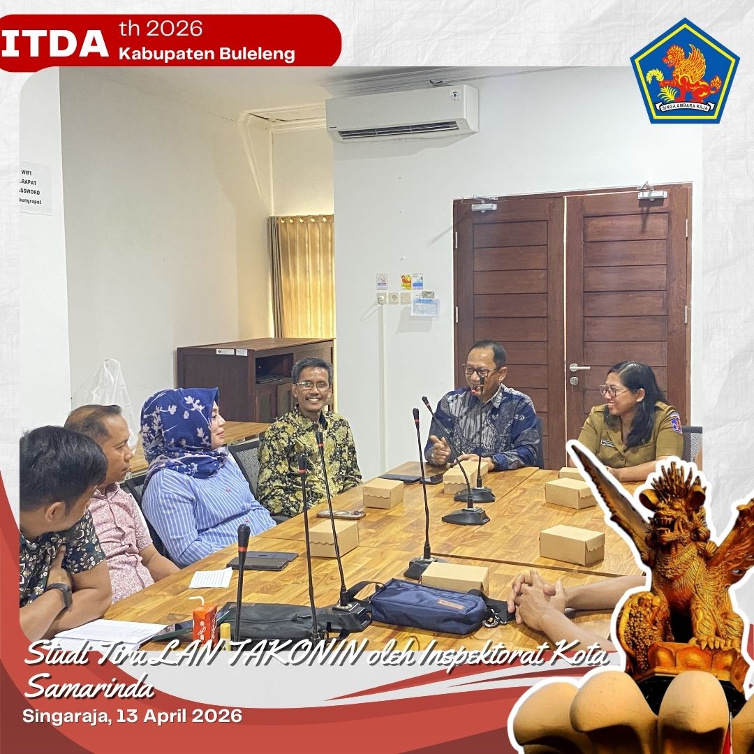Senin, 13 April 2026, telah dilaksanakan kegiatan studi tiru LAN TAKONIN yang diikuti oleh Inspektorat Kota Samarinda. Kegiatan ini bertujuan untuk memperkuat pemahaman serta berbagi praktik baik dalam pengelolaan pengawasan internal pemerintahan. Acara secara resmi dibuka oleh Sekretaris Inspektorat Daerah Kabupaten Buleleng, Ni Made Susi Adnyani, yang dalam sambutannya menyampaikan pentingnya kolaborasi antar daerah dalam meningkatkan kualitas tata kelola pemerintahan yang bersih dan akuntabel. Turut hadir dalam kegiatan tersebut Putu Agus Kirana memberikan pemaparan terkait implementasi program LAN TAKONIN di lingkungan Inspektorat Kabupaten Buleleng. Kegiatan berlangsung dengan diskusi interaktif serta pertukaran pengalaman antara peserta, guna mendorong peningkatan kinerja pengawasan di masing-masing daerah. Melalui kegiatan studi tiru ini, diharapkan terjalin sinergi yang lebih kuat antar inspektorat daerah dalam mewujudkan pemerintahan yang transparan dan profesional.