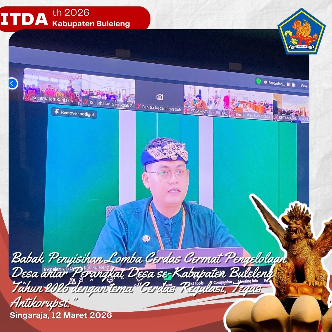 Dalam rangka merayakan HUT Kota Singaraja ke-422, telah dilaksanakan Babak Penyisihan Lomba Cerdas Cermat Pengelolaan Desa antar Perangkat Desa se-Kabupaten Buleleng Tahun 2026 dengan tema “Cerdas Regulasi, Tegas Antikorupsi.” Kegiatan ini dilaksanakan secara serentak di seluruh kecamatan di Kabupaten Buleleng dan diikuti oleh seluruh pemerintah desa. Berdasarkan hasil penilaian pada tingkat kecamatan, diperoleh pemenang sebagai berikut: