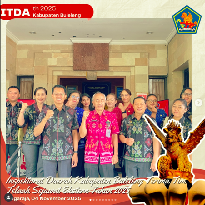 Inspektur Daerah Kabupaten Buleleng, I Putu Karuna, secara resmi menerima kedatangan Tim Telaah Sejawat Ekstern Kabupaten Badung dalam rangka pelaksanaan kegiatan Telaah Sejawat di lingkungan Inspektorat Daerah Kabupaten Buleleng. Kegiatan ini dilaksanakan mulai 3 November 2025 hingga 21 November 2025, selama 12 hari kerja, bertempat di Ruang Rapat Inspektorat Daerah Kabupaten Buleleng. Inspektur Daerah Kab.Buleleng I Putu Karuna menyampaikan bahwa kegiatan Telaah Sejawat ini merupakan bagian dari upaya penguatan fungsi pengawasan intern pemerintah serta peningkatan kualitas kinerja Aparat Pengawasan Intern Pemerintah (APIP). Kegiatan ini diharapkan dapat memberikan masukan yang konstruktif bagi Inspektorat Daerah Kabupaten Buleleng dalam rangka peningkatan kapabilitas APIP serta mendukung pencapaian tujuan pembangunan daerah yang transparan dan berintegritas.