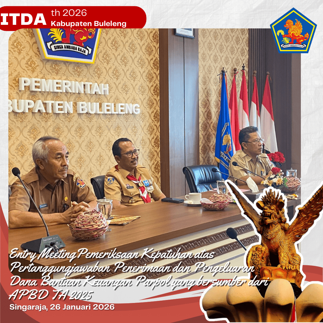 Singaraja, 26 Januari 2026 – Bertempat di Lobi Kantor Bupati Buleleng, telah dilaksanakan kegiatan Entry MeetingPemeriksaan Kepatuhan atas Pertanggungjawaban Penerimaan dan Pengeluaran Dana Bantuan Keuangan Partai Politik yang bersumber dari APBD Tahun Anggaran 2025. Pemeriksaan ini dilakukan terhadap partai politik di Provinsi Bali serta kabupaten/kota se-Bali. Kegiatan tersebut diikuti oleh Sekretaris Daerah Kabupaten Buleleng, Gede Suyasa, yang didampingi oleh Inspektur Daerah Kabupaten Buleleng, I Putu Karuna. Entry meeting ini menjadi tahap awal dalam rangka pelaksanaan fungsi pengawasan terhadap pengelolaan dana bantuan keuangan partai politik agar sesuai dengan ketentuan peraturan perundang-undangan yang berlaku. Acara dibuka secara langsung oleh Kepala Badan Pemeriksa Keuangan (BPK) Perwakilan Provinsi Bali, I Gusti Ngurah Satria Perwira. Dalam sambutannya, disampaikan bahwa pemeriksaan kepatuhan ini bertujuan untuk memastikan transparansi, akuntabilitas, serta tertib administrasi dalam pengelolaan dana bantuan keuangan partai politik. Pelaksanaan kegiatan pengawasan ini dijadwalkan berlangsung selama lima hari, yaitu mulai tanggal 26 s.d 30 Januari 2026.