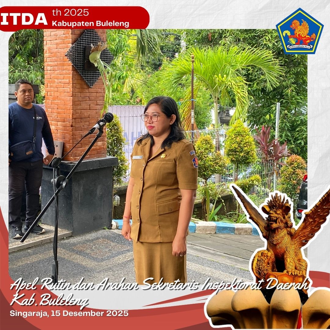 Singaraja, 15 Desember 2025 Inspektorat Daerah Kabupaten Buleleng melaksanakan apel rutin yang dirangkaikan dengan arahan Sekretaris Inspektorat Daerah Kabupaten Buleleng, Ni Made Susi Adnyani. Dalam arahannya, disampaikan penekanan agar seluruh pegawai melaksanakan tugas dengan penuh kehati-hatian, khususnya dalam menghadapi kondisi cuaca.