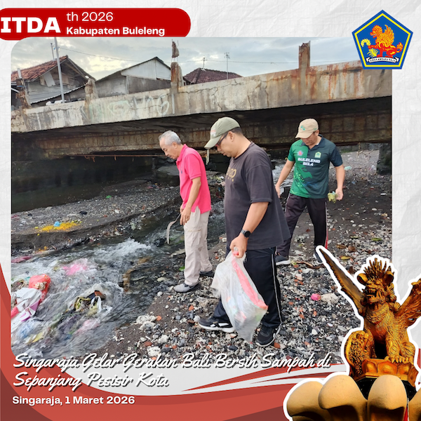 Singaraja, Minggu 1 Maret 2026 Gerakan Bali Bersih Sampah dilaksanakan di kawasan pesisir Singaraja, mulai dari Pantai Kampung Baru depan YPUH hingga Pantai Eks Pelabuhan Buleleng, serta Pantai Kayubuntil sampai Pantai SKIP. Kegiatan ini melibatkan perangkat daerah, TNI-Polri, pelajar, komunitas lingkungan, masyarakat, serta Inspektorat Daerah Kabupaten Buleleng yang turut berpartisipasi dalam aksi bersih-bersih. Peserta menyisir sepanjang pantai untuk mengumpulkan dan memilah sampah guna menjaga kebersihan dan kelestarian lingkungan pesisir. Melalui kegiatan ini, diharapkan kesadaran masyarakat untuk menjaga kebersihan pantai semakin meningkat dan terwujud pesisir Singaraja yang bersih dan nyaman.