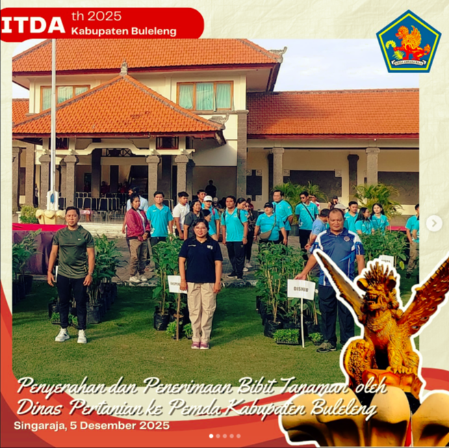 Bertempat di Taman Kota Singaraja, Kabupaten Buleleng, Sekretaris Inspektorat Daerah Kabupaten Buleleng, Ni Made Susi Adnyani, menerima bibit tanaman dari Dinas Pertanian Kabupaten Buleleng, yang terdiri atas: 1. 20 bibit cabai dalam polybag besar, 2. 10 bibit terong dalam polybag besar, 3. 130 bibit tanaman kecil dalam prem. Selanjutnya, sebanyak 30 bibit tanaman besar akan ditanam di lingkungan kantor Inspektorat Daerah Kabupaten Buleleng, sedangkan 130 bibit kecil akan didistribusikan kepada seluruh pegawai. Melalui bantuan bibit tanaman ini, diharapkan instansi pemerintah daerah beserta para pegawainya dapat turut berkontribusi dalam upaya menekan harga bahan pangan dan kebutuhan pokok.